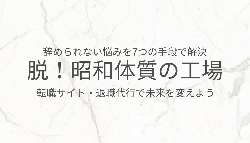 昭和体質の工場にありがちな長時間残業・古いやり方の押し付け・改善のない職場環境に疲弊している人も多いでしょう。